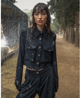 146,00 €Crop σακάκι με τσέπες και κουμπιά της C.Manolo σε μαύρο χρώμα.