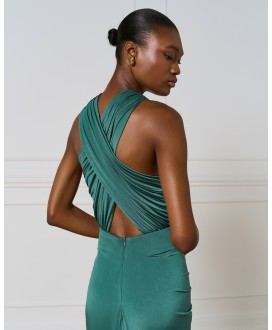 159,00 €Μάξι φόρεμα με χιαστί λαιμόκοψη και άνοιγμα μπροστά και πίσω. Διαθέτει εντυπωσιακές λεπτομέρειες από σούρες. Επιλέξτε το για κομψές εμφανίσεις σε επίσημες περιστάσεις