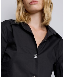 Βαμβακερό πουκάμισο με ανάγλυφα μεταλλικά κουμπιά μπροστά και στις μανσέτες. Διαθέτει γιακά και ασύμμετρο στρογγυλό τελείωμα. Επιλέξτε το για κομψές εμφανίσεις.