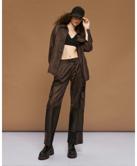 139,00 €Τζάκετ τύπου suede με γιακά και λεπτομέρειες από διαφάνεια. Διαθέτει πλαϊνές τσέπες, αποσπώμενη δετή ζώνη και κλείσιμο με φερμουάρ μπροστά. Συνδυάστε με το αντίστοιχο παντελόνι από τη συλλογή μας για στιλάτες εμφανίσεις