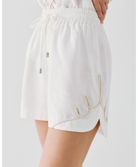 Σορτς λινό με κέντημα κορδόνια